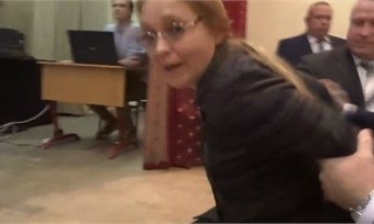 В интернете появилось видео, как четверо здоровенных мужчин пытаются силой не допустить депутата Мосгордумы Елену Шувалову к микрофону