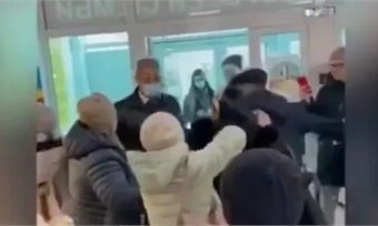 На опубликованных РЕН ТВ кадрах видно, как толпа оттиснула мужчину, сыграв на численном преимуществе. Одна из участников «штурма» выкрикнула, что QR-код, который от нее требуют, даже не русское слово.