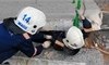 МЧСники из Новосибирска разрушили вход в подъезд, чтобы спасти кошку Им пришлось раздвигать ступени и бетонные плиты